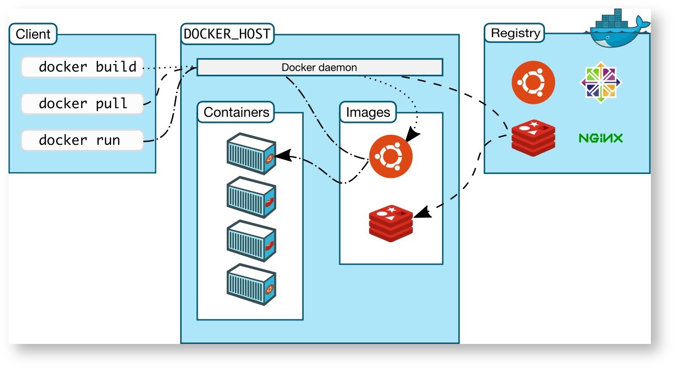 Docker是C/S架构,包括后台的Docker daemon,负责管理镜像和容器,以及前端的Docker client,负责接收用户的命令行输入。Docker daemon和Docker client之间通过网络通信,所以可以分布在不同的物理机上。除此外,还有Registry用于托管镜像和进行版本管理,其作用类似于GitHub。 |