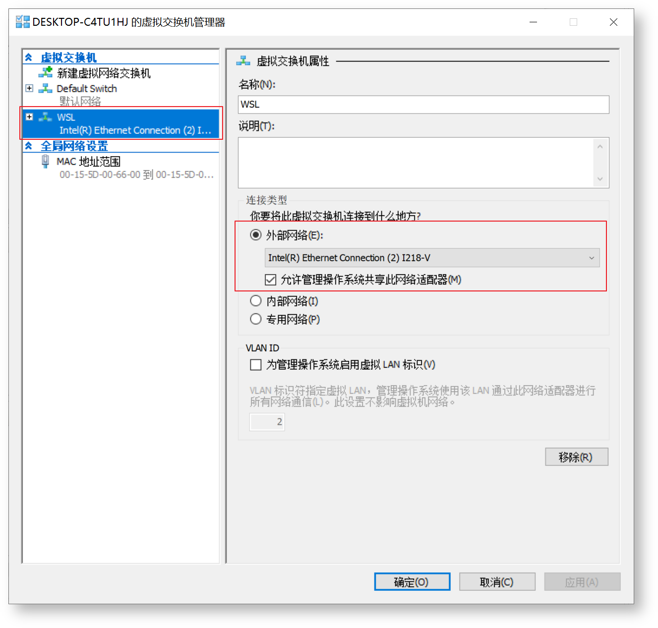 修改Hyper-V虚拟交换机配置