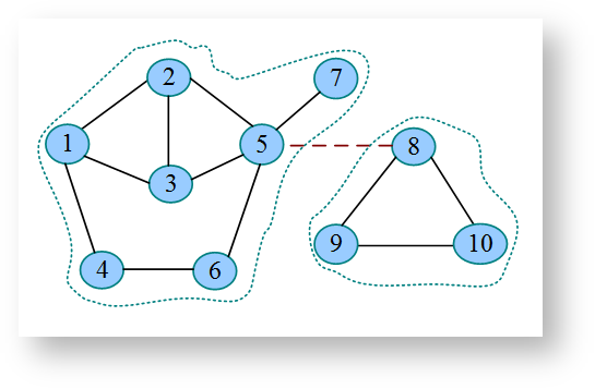 桥:在无向图中,如果去掉图G中的一条边e,图G分裂为两个不相连的子图,那么e就是图G的桥或割边。