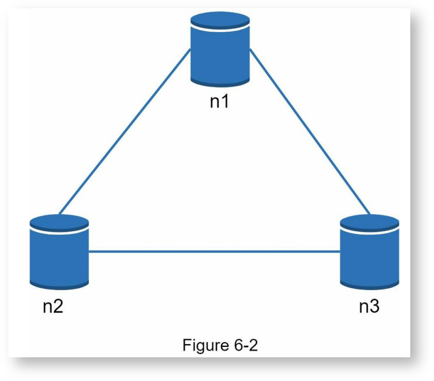 以下面的分布式系统为例,这里有n1~n3三个结点,数据需要同时在n1~n3上复制存储: