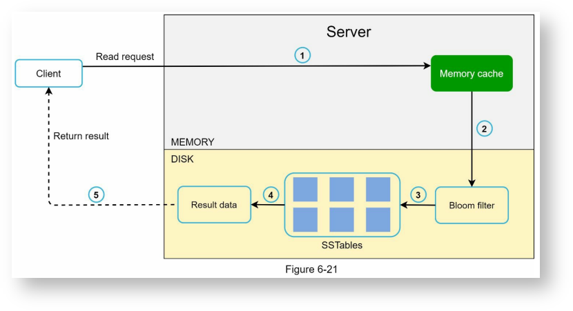 如果数据不在缓存中,则要从磁盘中查找,可使用布隆过滤器来提高查找效率,整个过程如下: