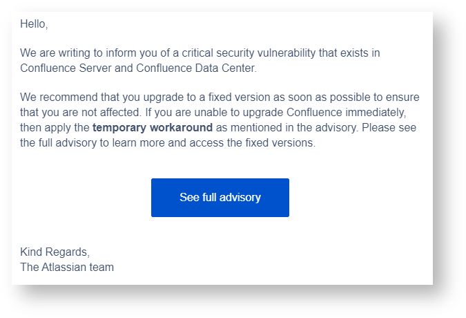 Confluence发邮件报告了一个高危(critical)漏洞并提示升级,看描述这个漏洞有可能导致未认证的用户在服务器上执行任意代码,刚好Confluence 发布了7.13.0长期支持版,所以升级一下。