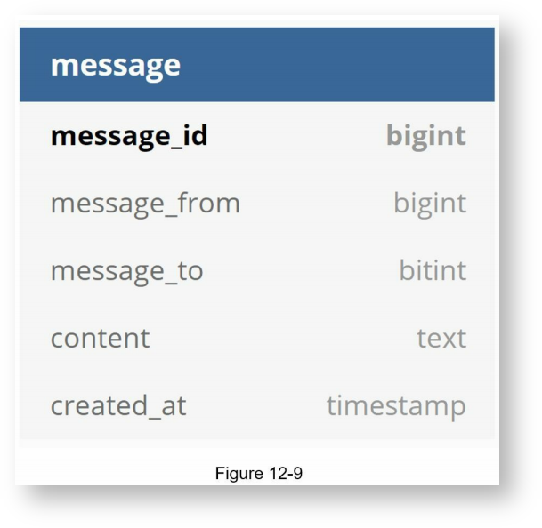 使用如下的设计,主键是消息id,用于确定消息的顺序。不能仅靠创建时间来确定消息顺序,因为有概率两条消息被同时创建。