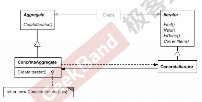 - 在软件构建过程中,集合对象内部结构常常变化各异。但对于这些集合对象,我们希望在不暴露其内部结构的同时,可以让外部客户代码透明地访问其中包含的元素,同时这种“透明遍历”也为“同一种算法在多种集合对象上进行操作”提供了可能。