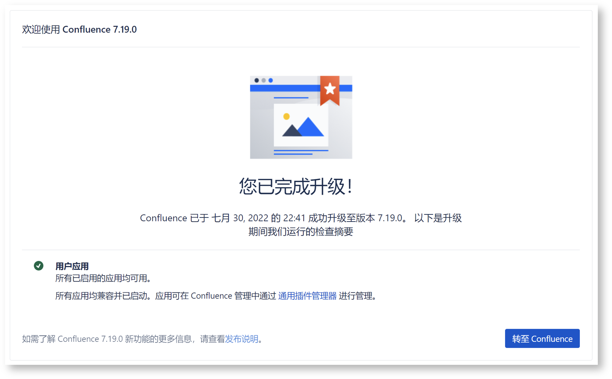 Installation of Confluence 7.19.0 is complete