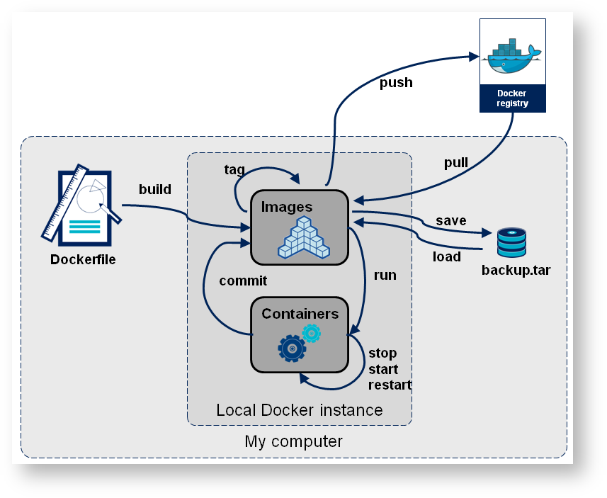 Docker can build images automatically by reading the instructions from a Dockerfile. A Dockerfile is a text document that contains all the commands a user could call on the command line to assemble an image. Using docker build users can create an automated build that executes several command-line instructions in succession.