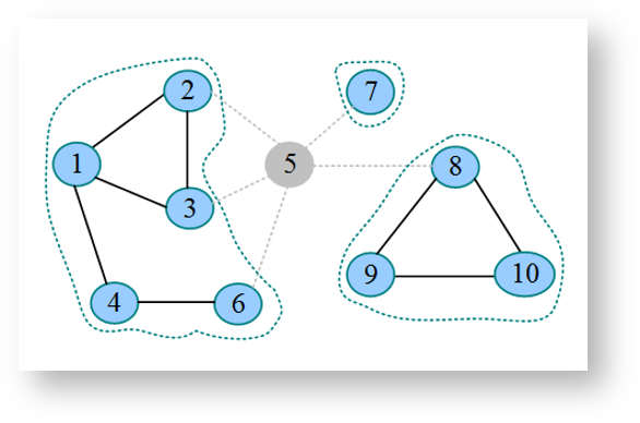 连通分量:无向图G的极大连通子图称为图的连通分量。连通分量可能不止一个,对每个连通分量,如果再向其中加入一个节点,这个子图就不连通。